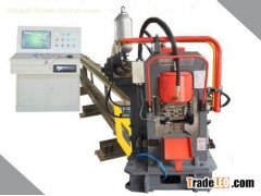The machine is the special equipment used for strip plate marking, punching, cutting and automatic production. The machine has obtained the national patent (the patent No. is ZL201320416113.0). The machine includes the below main units: feeding platform, overturning, CNC Carriage, in-feeding roller-way, marking, punching, cutting, conveyor of finished product, hydraulic station, electric cabinet and positioning device, etc.